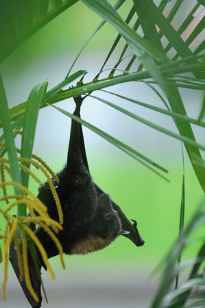 緑の中のメガネオオコウモリ 太田 祐 15年前 世の中のメガネオオコウモリの画像は(自分も含めて)空抜けが多いからこういう構図もたまに。ベランダから。 学名 Pteropus conspicillatus 英名 Spectacled Flying-fox メガネオオコウモリがゆらゆら止まらないのでちょっと被写体ぶれしているけどグリーンとイエローが奇麗。