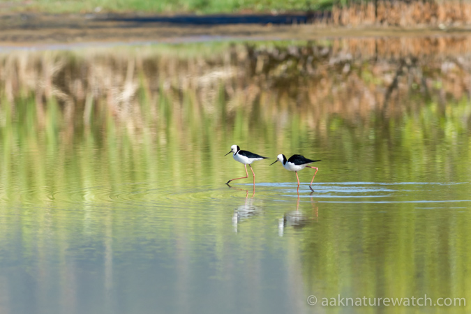 オーストラリアセイタカシギその3 太田 祐 10年前 オーストラリアセイタカシギは少なくともケアンズ周辺ではそれほど見かける野鳥ではない。ただし特定の池、特定の養魚場など長年安定して多数が生息している場所もある。この場所もその一つで、普通は淡水にいることが多いオーストラリアセイタカシギがマングローブ林を背景にした絵は新鮮に見える。歩き回る鳥なので、動画の方がいいかも↓ すぐ近くで鳴くヤドリギハナドリやサメイロミツスイの声も収録。