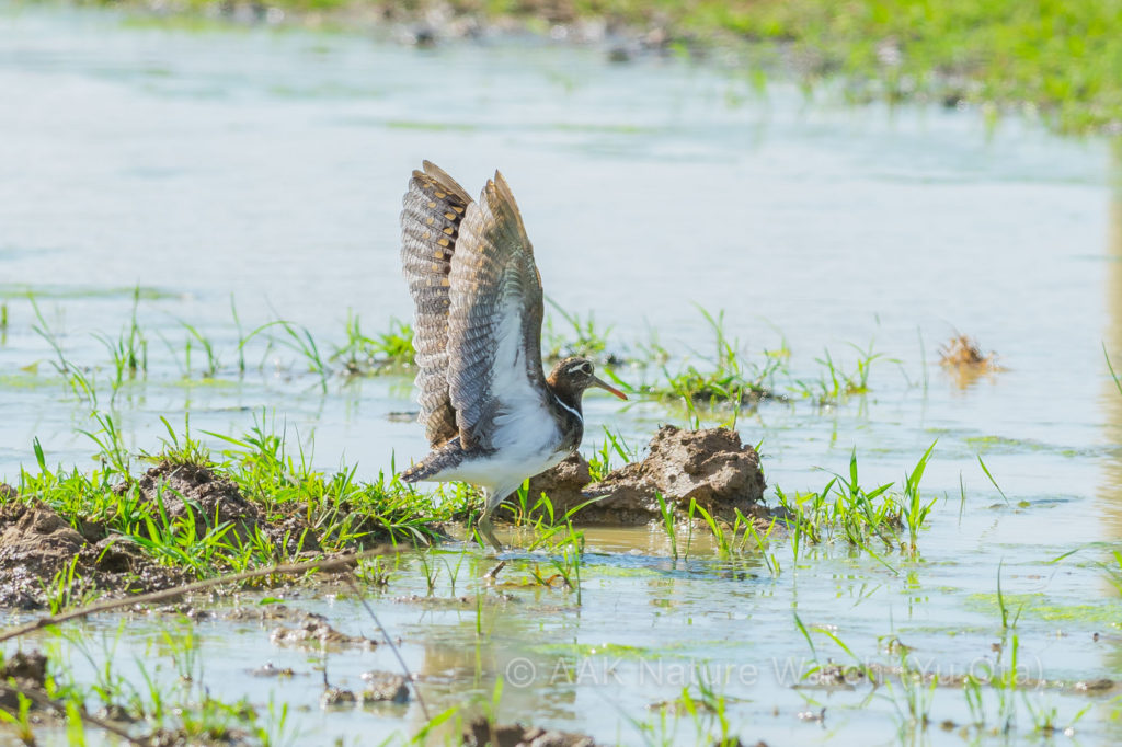 年が明けて情報が解禁されたのか、友人二人がオーストラリアタマシギをゲットし比較的詳細な情報をネットに上げていたので私も正月早々単独で行ってみることにした。往復8時間の運転はこの世界では「近所」である。外はめちゃくちゃ暑く37度とか。ちゃんといてくれるといいが、と駆けつけるとギャラリーはゼロ。
