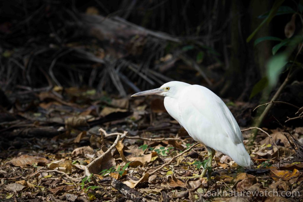 ケアンズではクロサギは白いものも黒いものも半々くらいで見られる。普通は干潟など沿岸で見られるものであり、ちょっとこうした森の中にいるというのは新鮮な感じがした。