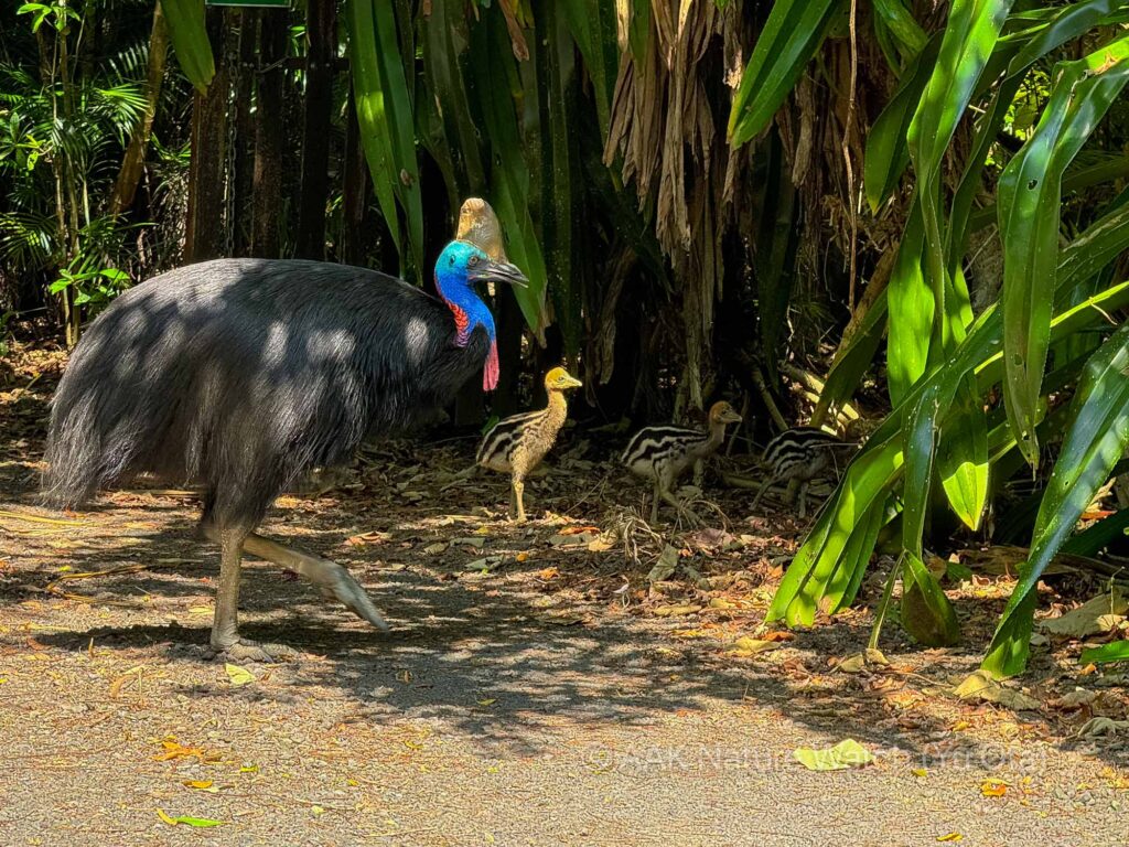このヒクイドリ一家なのだけど、一回気がつかずに通り過ぎたのだけど乗客が「さっきの家の庭にヒクイドリの置物があったわ」というので戻ってみたらやっぱりホンモノだったというオチだった。ヒクイドリは地域によってはアイコン化していて看板や標識、タイルアート、模型などが確かに道端にあるので置物だと誤認しても全然おかしくはない。