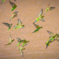 水辺に向かってこうして降下してくるセキセイの群れは若干スピードが落ち、シャッターチャンスなのだけど
