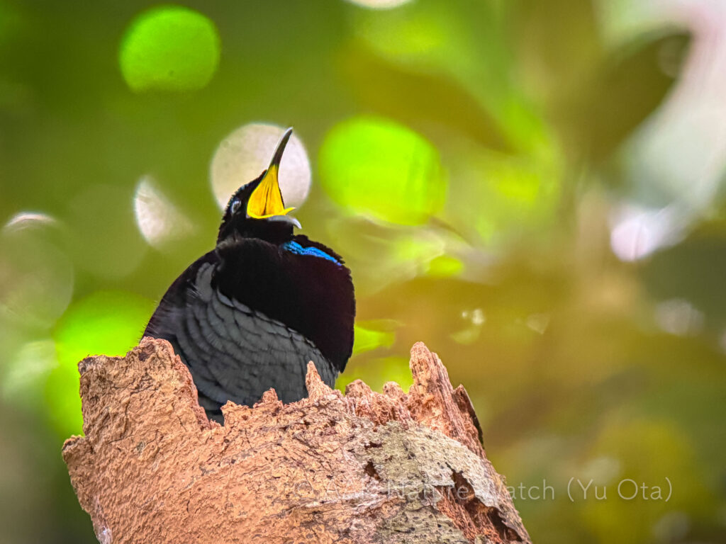 2025年コウロコフウチョウの求愛は異常に長く、半年以上にわたって続いていた。写真はいずれもiPhone15を興和TSN-88望遠鏡にくっつけて撮ったもの。ケアンズ周辺でのガイド時においてはもはや手持ちズームレンズカメラさえ携帯していない(車にさえ積んでいない)私に撮ってはスマホ+望遠鏡が最後の撮影機器となっている。