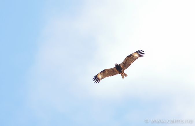 クロムネトビは全国何処へ行っても分布が薄く、見る機会が少ない。試しに日本語で「クロムネトビ」と検索してもほとんど何もヒットしない事からも分かる。高いところを飛んでいる事が多いが、この時はつがいで餌を探しているようだった。クロムネトビは石を使って、固いエミューの卵を割る芸当が知られる。今まだいるのか知らないが、一時期ケアンズドロピカルズーのバードショーにでていた。