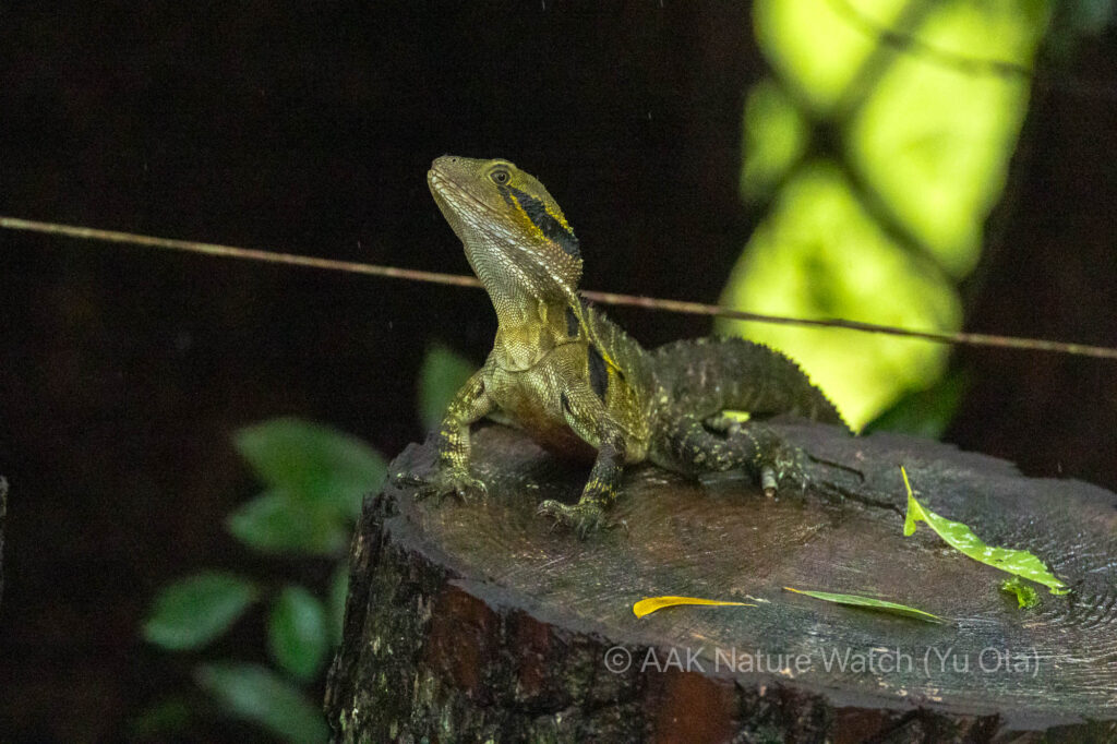 ジョンストン川沿いである自宅兼民宿ジョンストンベンドには時々ヒガシウォータードラゴンが上陸してきて休んでいる。野生のウォータードラゴンはペットのそれとは大違いで実は非常に臆病であり、すぐ水に飛び込んで逃げる。
