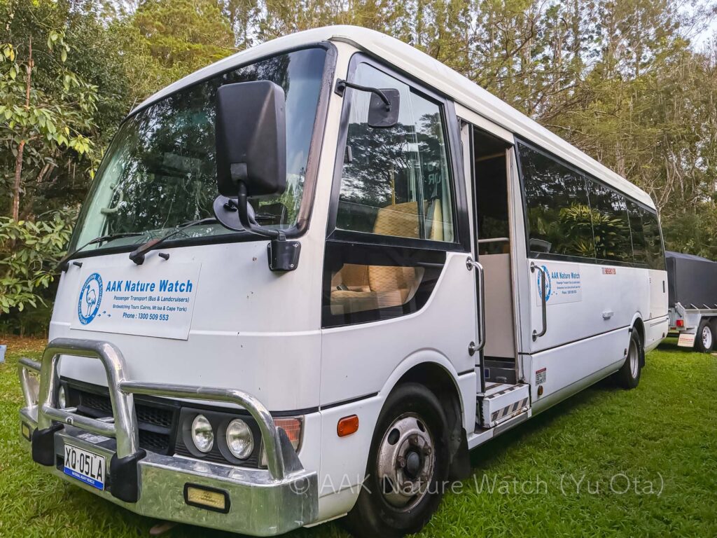 先月にも軽く紹介していますが、現状ではAAK Nature Watch最大の車両である三菱自動車製23人乗りバス、ローザを紹介します。野鳥ツアーで使うことは欧米グループツアー以外ではまずないですが、AAK Nature Watchのチャーターバス部門の主力としてすでに活躍しています。今月は龍谷大学からの海外研修22名をのせて何日か走り回り、派手なデビューを飾りました。