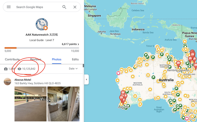 AAK Nature Watch太田祐はグーグルMapにおいてレベル7という、そんなに見かけないような高いランクに位置していて、先日その閲覧回数が1000万を超えましたというメールが来た。