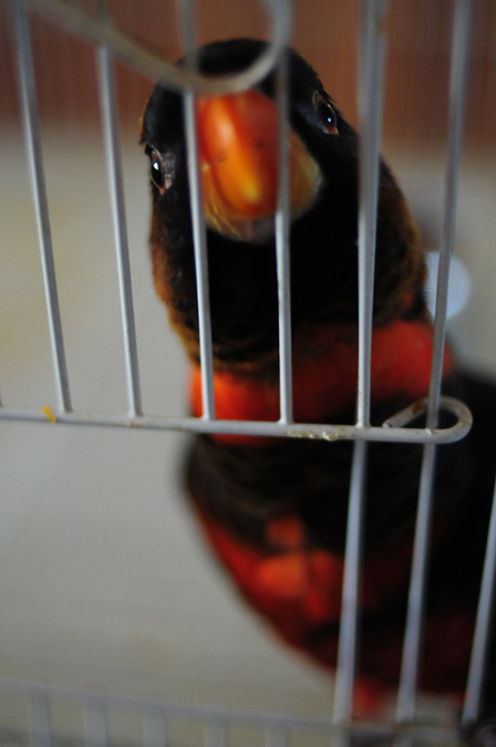 アサヒの鳥かごに近づくと