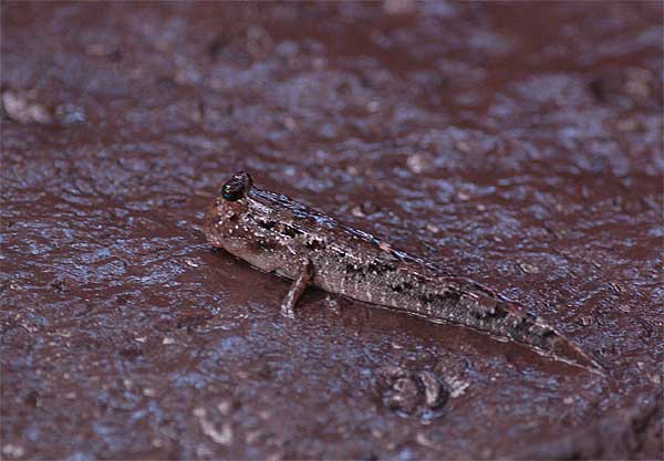釣る相手ではないけど一応このコーナーへ。トビハゼ。オーストラリアではマッドスキッパーと呼びます。こんな変な顔の魚が(失礼)日本では熱帯魚よろしく飼育されるらしいけど…。ケアンズには干潟へ行けばそこら中にいる。時期によっては追っかけ合ったり忙しい。