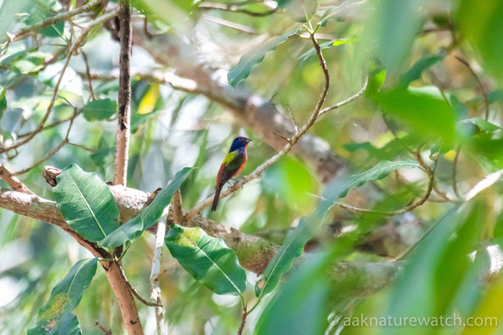 北米からの渡り鳥ゴシキノジコにちょうど遭遇。絵本の鳥のよう。