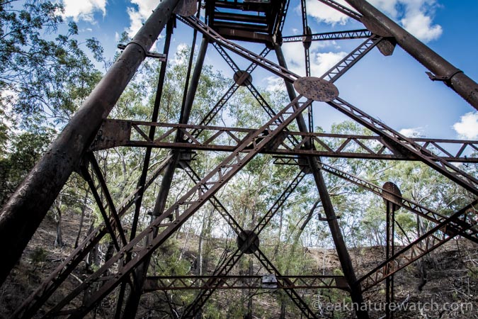 ←この写真の遺物こそ、四国ほどの面積を支配したジョン・モファット帝国のシンボルの一つバルカン鉱山跡地。オーストラリアの輸出額の三分の一を牛耳っていたと言うから往年の権勢が忍ばれる。アーバインバンク周辺には鉄道網がしかれ、それはキュランダ鉄道などよりも更に前の話である。