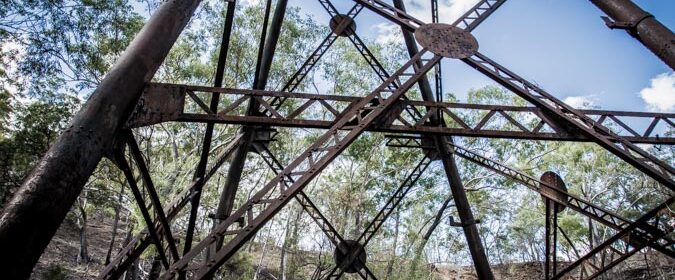 前編から読む。 アーバインバンクの集落や資料館で古いガラクタに悶えたあとは、周辺の探検に出かけた。 ←この写真の遺物こそ、四国ほどの面積を支配したジョン・モファット帝国のシンボルの一つバルカン鉱山跡地。オーストラリアの輸 … 続きを読む アーバインバンク一泊二日旅行 後編