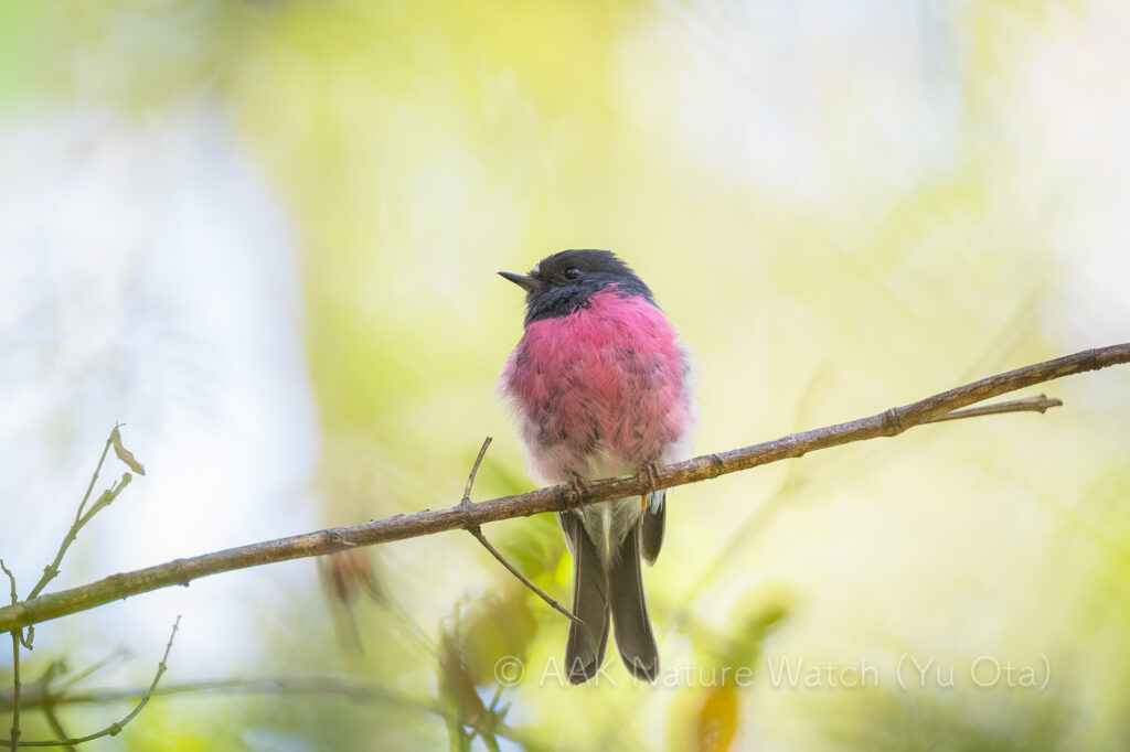 タスマニア島にしかいないわけではないけどいつもセグロサンショクヒタキ(通称ピンクロビン)を強くリクエストされる。伝統的なポイントはカメラマンに追いかけられまくってダメになり、過去何年か機能していた別の作戦も今年は反応がない。困りましたねぇとやっていると100mくらい森の奥から微かな鳴き声が?