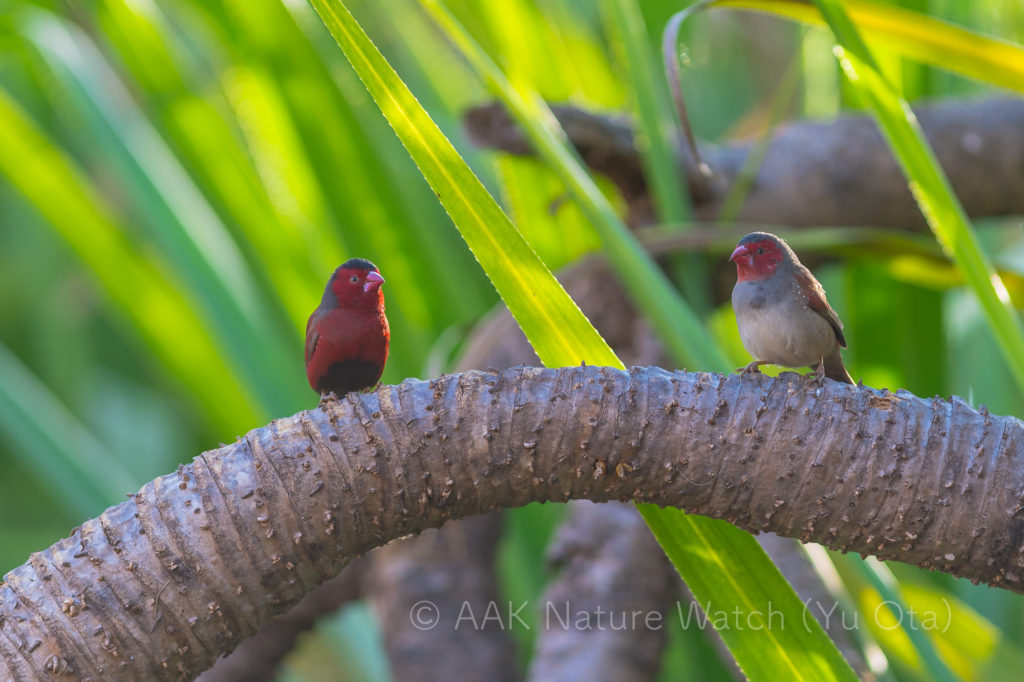 コキンチョウの数十羽の群れが二回飛び、別々の群れだとすれば100羽以上いたことになる。