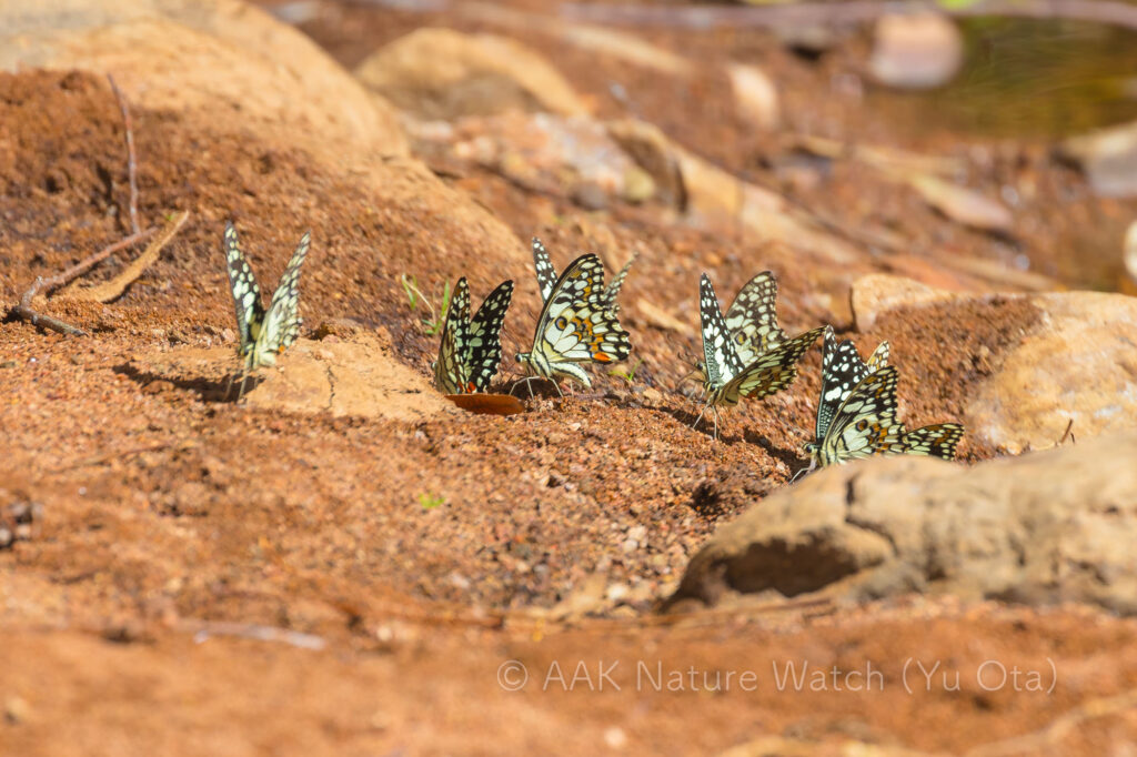 信仰心がない、というか信じるのは基本的に自分だけという私は気にせず散策する。オナシアゲハがたくさん吸水に来ていた。この蝶は全国に薄く広く分布し、自宅兼民宿のジョンストンベンドにもいるけどこういう図を見るのは初めて。